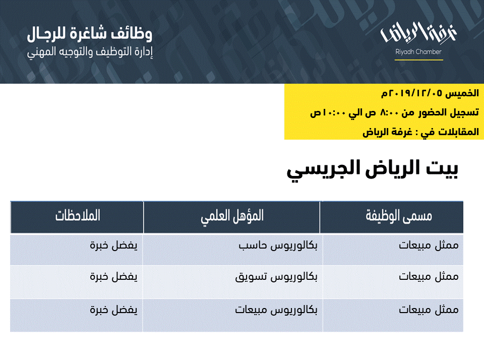 بيت الجريسي وظائف ممثلي مبيعات رجالية