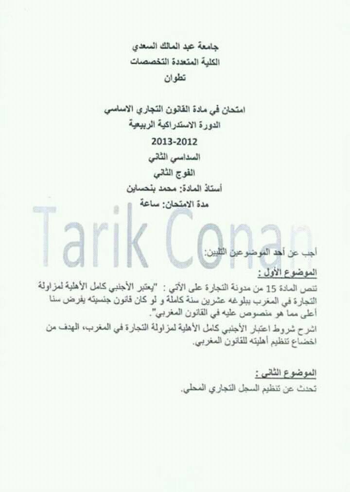 نماذج امتحانات مادة القانون التجاري السداسي الثاني S2 للسنوات السابقة